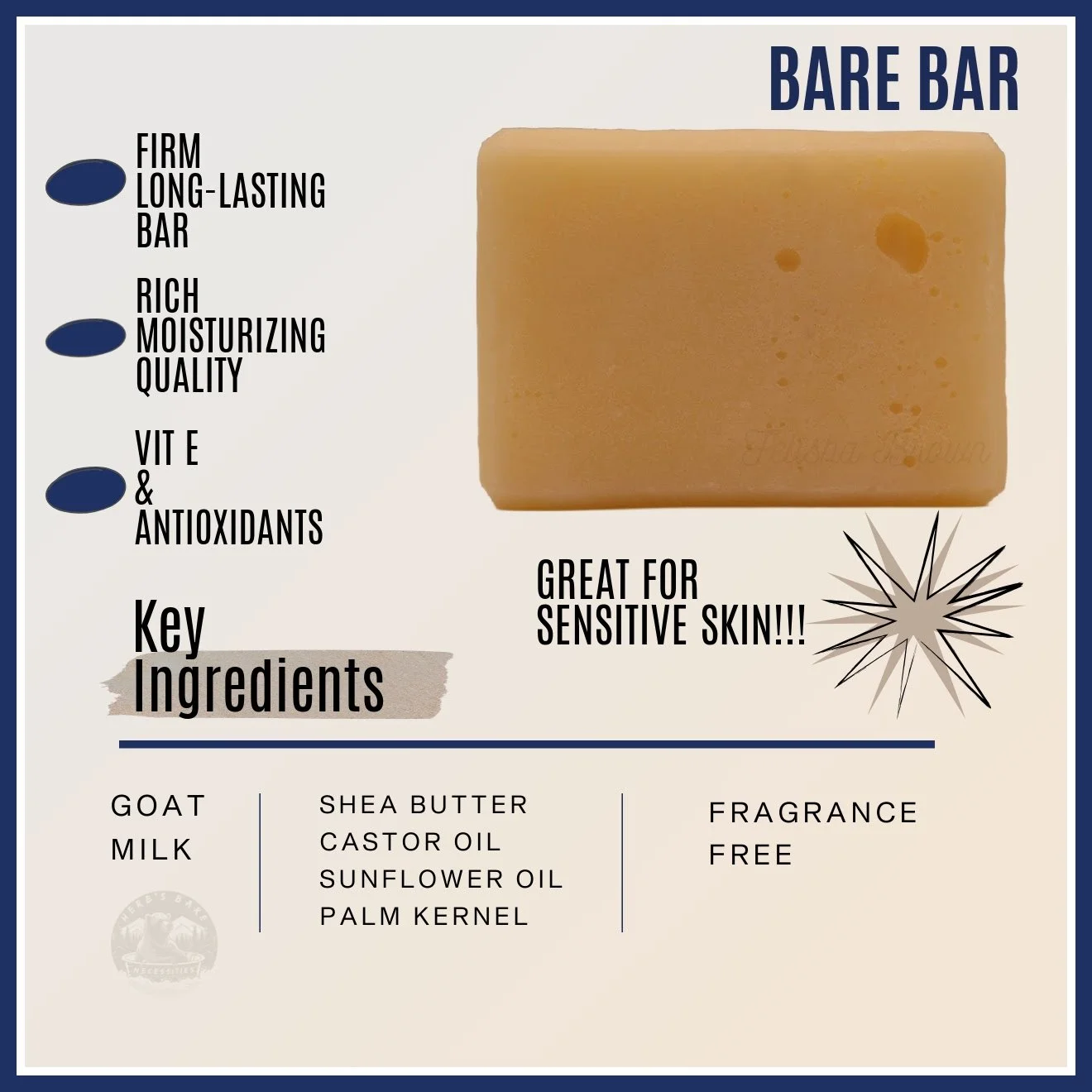 This bundle includes an 8 fl.oz Bottle of Goat Milk Lotion and (3)5.7 oz. Goat Milk Bar Soap that are FRAGRANCE FREE!!! Great for all skin types, especially those with sensitive skin/eczema and more! You will receive The Bare Bottle, The Bare Bar (1), The Char Bar (1) and Milk & Honey(1)! This bundle is a great starter bundle! Don’t wait…get one today!